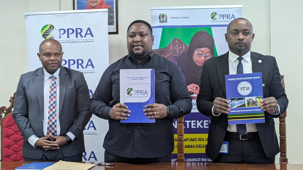 Mamlaka ya Udhibiti wa Ununuzi wa Umma – PPRA, imesaini mkataba wa makubaliano ya ushirikiano na Mamlaka ya Elimu na Mafunzo ya Ufundi Stadi – VETA, katika masuala yasiyo ya ununuzi wa umma.