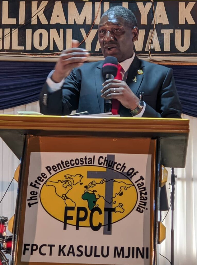 Ni katika ibada maalumu ya Kanisa la FPCT Kasulu Mjini ibada ambayo imeongozwa na Askofu mkuu wa kanisa la FPCT Tanzania Askofu Steven Mulenga wakati wa kusimika viongozi mbalimbali wa Jimbo la Kasulu.