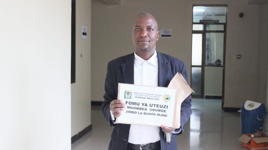 Ni mgombea wa cha Democratic Party DP ambaye leo tarehe 18 Augost amechukua fomu za tume huru ya taifa ya uchaguzi ngazi ya jimbo akitaka kugombea ubunge na ngazi ya kata akitaka kugombea udiwani.