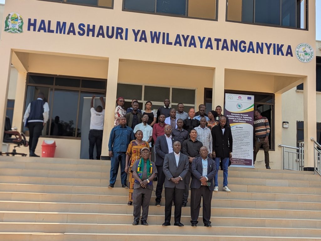 Picha ya pamoja ya viongozi wa mradi, katikati ni mkuu wa wilaya ya Tanganyika. Picha na Anna Millanzi