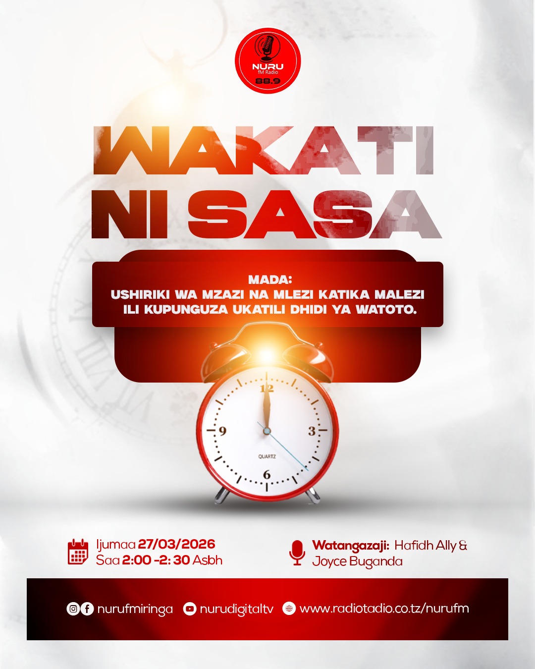 Wakati matukio ya Ukatili wa Kijinsia yakiendelea kuripotiwa katika maeneo mbalimbali Hapa nchini Nuru FM imeandaa Makala maalumu kuelezea nafasi ya Mzazi na Mlezi katika malezi ili kupunguza matukio hayo dhidi ya watoto kwa kuwajengea maadili, ujasiri, uthubutu na tabia ya kutoa taarifa pale wanapofanyiwa matukio hayo.