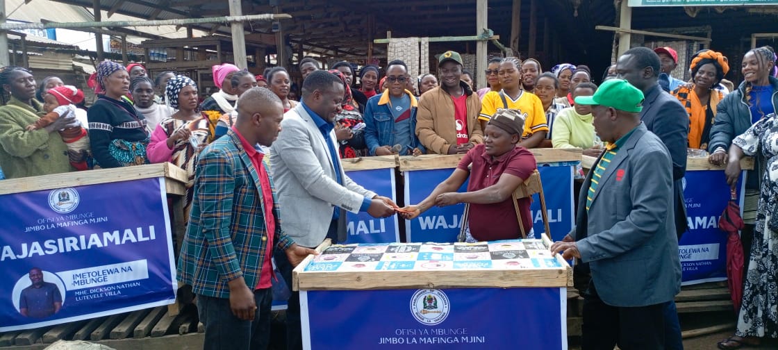 Mbunge wa Jimbo la Mafinga Mjini Mh. Dickson Lutevele VILLA ametimiza ahadi yake kwa kukabidhi meza 90 kwa Wajasiriamali wa Soko la Mashujaa.
