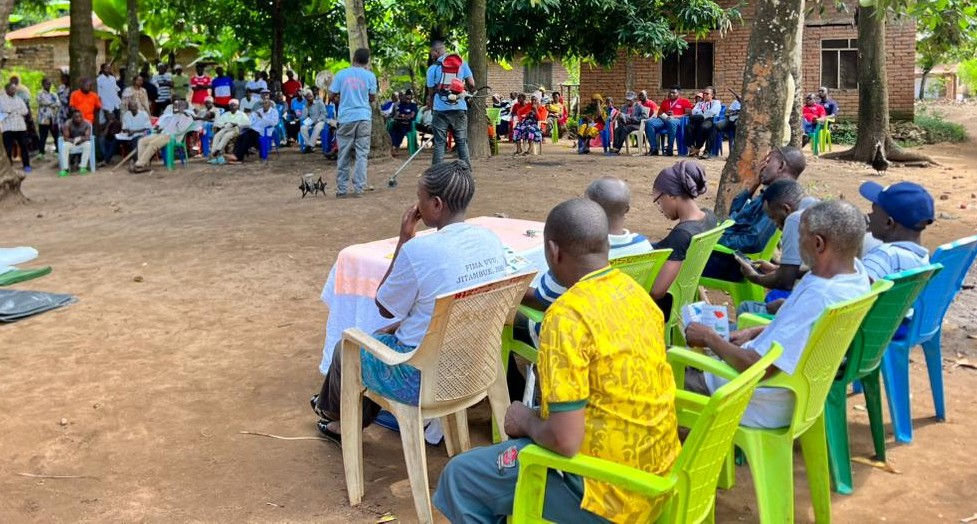 picha ya wananchi wakipata maelekezo jinsi ya kutumia mashine ya kuvuna Mpunga – Picha na Tumaini Mbwambo