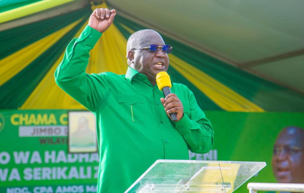 Katibu wa NEC, itikadi, uenezi na mafunzo CCM taifa, CPA Amos Makala akihutubia wanachama na wananchi wilayani Masasi. Picha na Godbless Lucius
