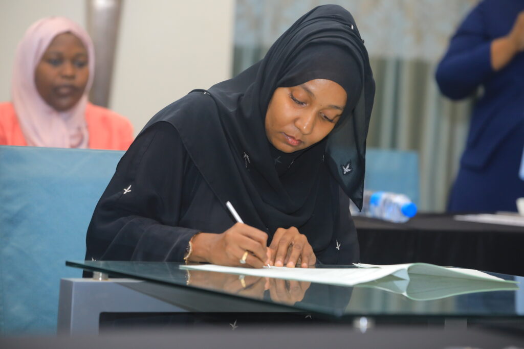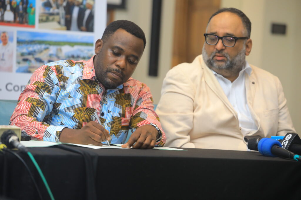 Waziri wa Utalii na Mambo ya Kale wa Zanzibar, Mudrick Ramadhan Soraga,akisaini makubaliano ya ushirikiano kati ya wizara yake na taasisi nane muhimu za sekta ya utalii, iliyofanyika katika ukumbi wa Park Hyatt, Zanzibar.Mary Julius.